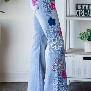 Floral Embroidered Flare Jeans High Waisted Light Wash