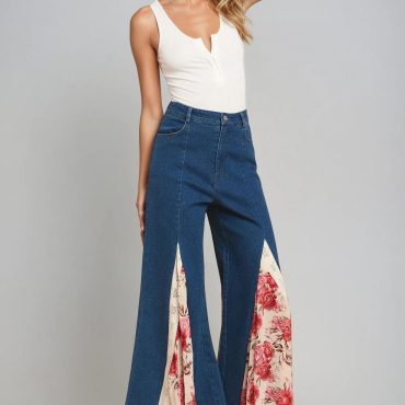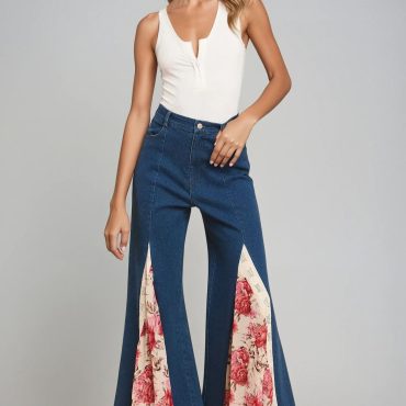Floral Wide Leg Jeans: Women’s Boho Rose &