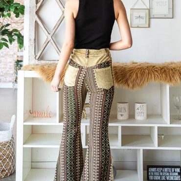 Aztec Print Corduroy Bell Bottom Pants: Boho Flare