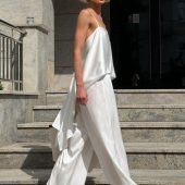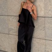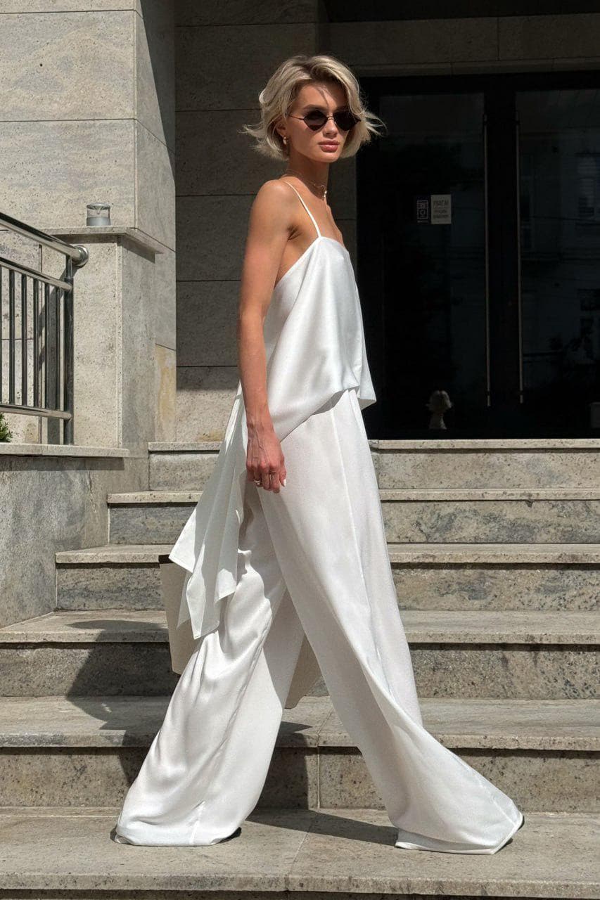 Crafted from Mango silk (97% polyester, 3% elastane), this set offers a soft, weightless drape and a silky sheen that catches the light. It’s breathable, elegant, and ideal for warm-weather wear or layering under a blazer.